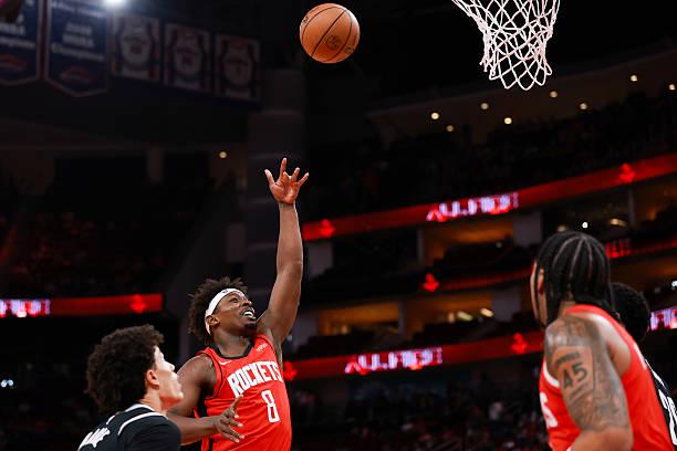 本场比赛中,火箭的替补锋线大将杰肖恩-泰特(Jae'Sean Tate)的表现并不理想。泰特全场出场8分28秒,投篮2中0,三分线外2中0,全场1分未得,仅贡献2篮板的数据,正负值为-2。泰特在进攻端并没有展现出自己的得分能力,他在三分线外的手感也不太理想,他在进攻端并没有起到应该起到的效果。可能也是因为出场时间有限,泰特在防守端的表现也是非常一般的。看起来他展现出了积极的防守态度,实际上他在防守端也没有起到很好的效果。泰特在本场比赛中真是没有展现出任何的特点和个人能力,他也是火箭全队整体表现最差的球员之一了,完全没有为球队的胜利提供任何帮助。