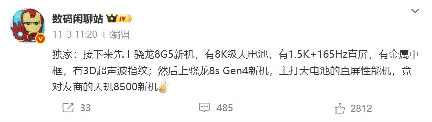 年底还会有一波高性能手机发布,会带来骁龙8Gen 5处理器和天玑9500e处理器,都有高性能表现,跑分大概都在三百万以上,但定价估计在两千元档,主打高性价比,据了解一加有一款新机会首发搭载骁龙8Gen 5处理器,但命名官方还没爆料,不过近期倒是在网上曝光嘉信资本,据了解有可能是一加ace 6 pro max,主打核心性能体验。
