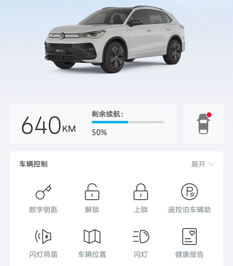 泊车方面,具备自动泊车、记忆泊车和遥控泊车。如果遇到特别狭窄,难以打开车门时,可以通过上汽大众的APP,在登陆后的页面上,遥控自己的车,驶出车位或驶入车位。