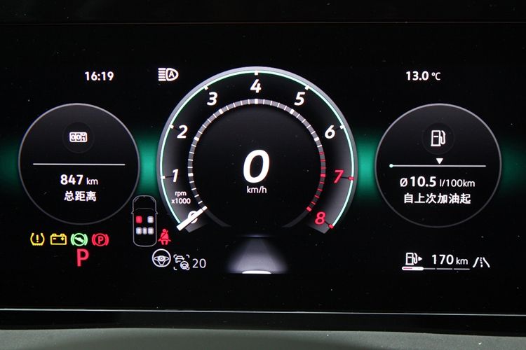 仪表盘是一块10.3英寸的液晶屏,界面可以根据个人喜好更改。与之搭配的,是投影在前风挡上的抬头显示。