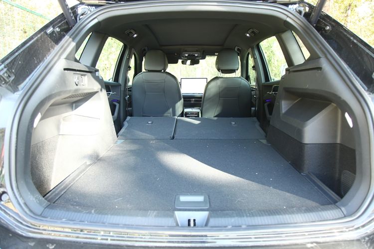 单看行李厢,长1015毫米,最小宽1000毫米,高730毫米,遮挡帘以下高430毫米,容积471升。侧壁上配有12伏电源接口,地板下面是备胎和换胎工具。地板与遮物帘质地厚实,做工很仔细。